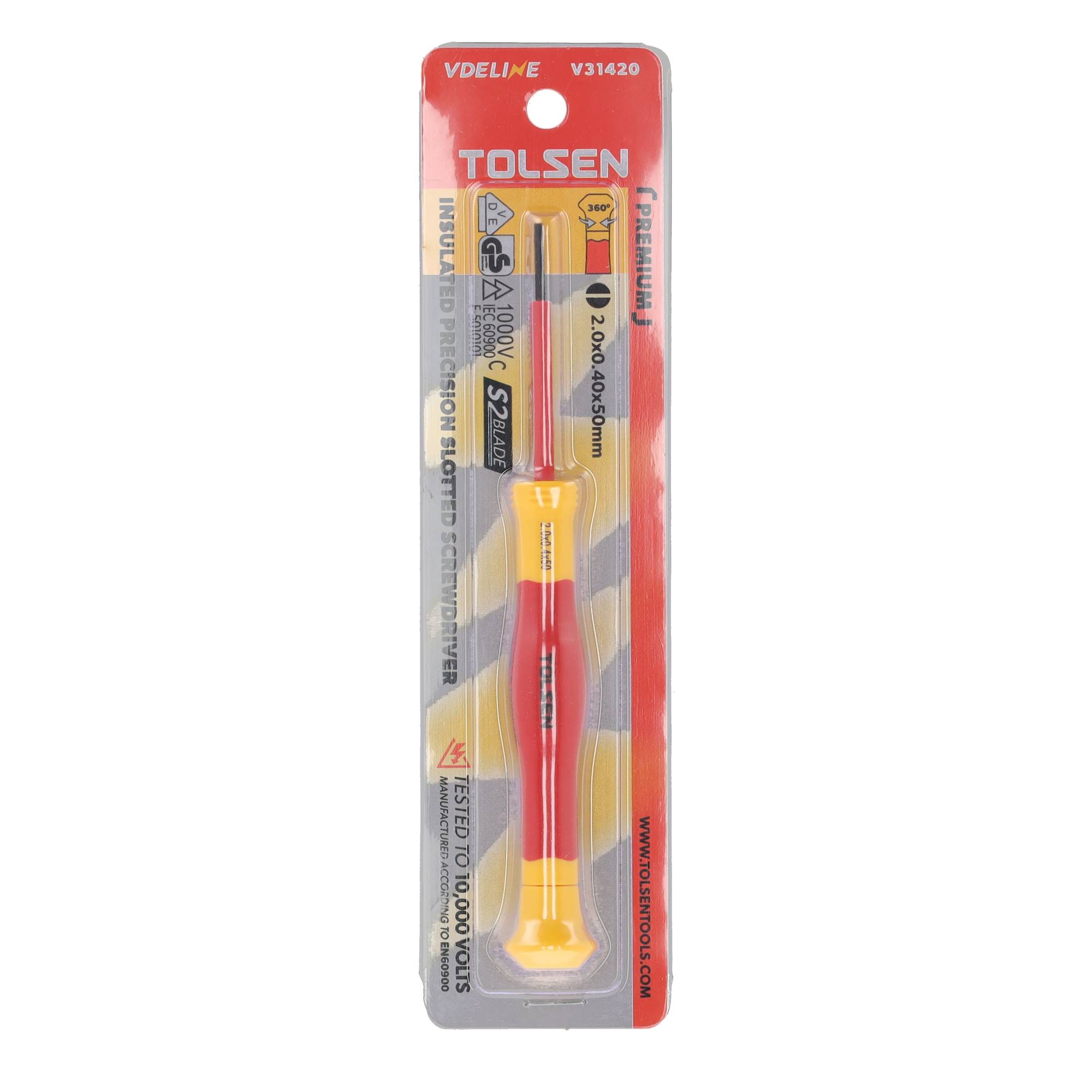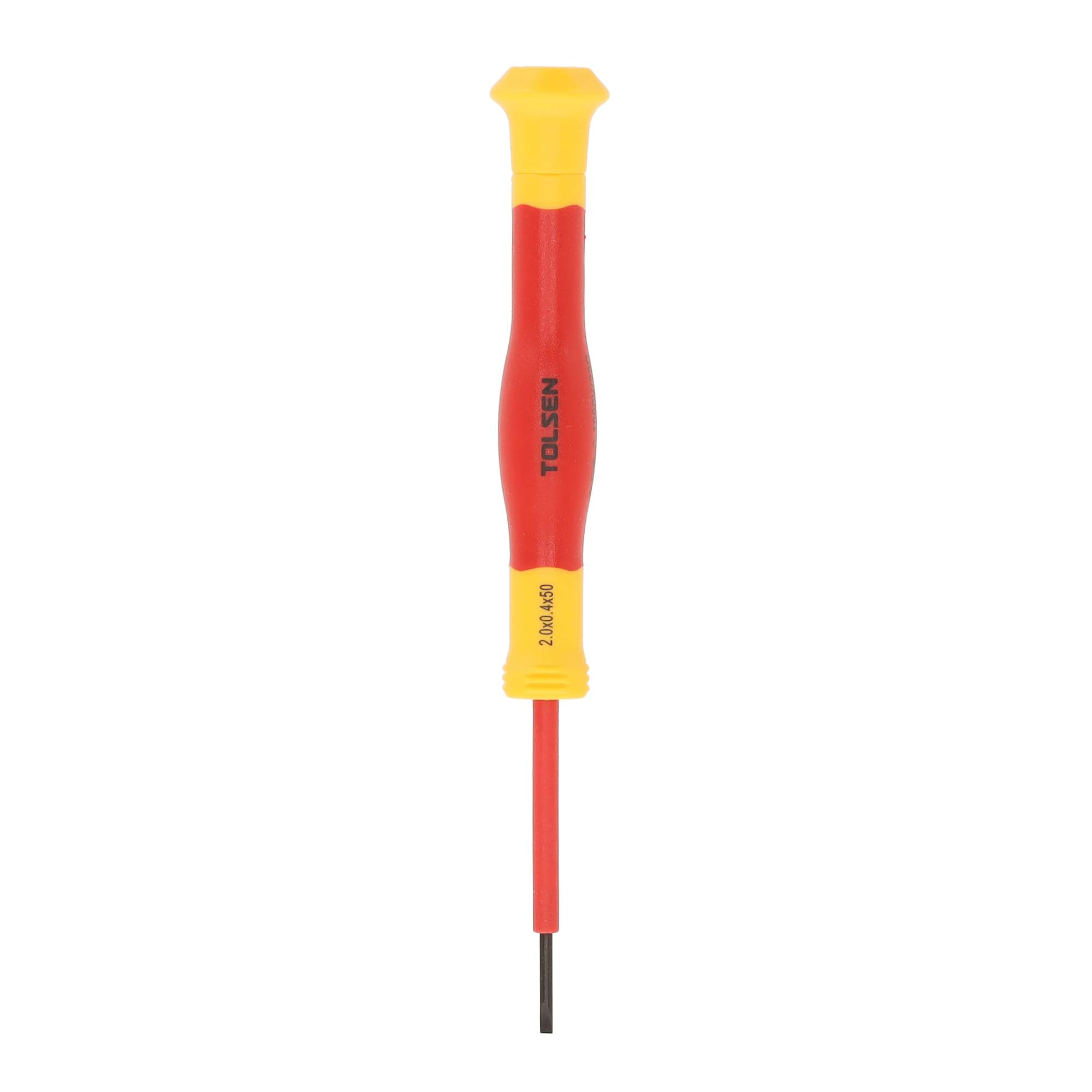 De VDE Line Geïsoleerde Precisie Sleufschroevendraaier 2.0 x 0.40 x 50 mm is een hoogwaardige, professioneel gecertificeerde schroevendraaier voor fijn en veilig elektrisch werk. Een sleufschroevendraaier, ook wel een platte schroevendraaier genoemd, is een veelzijdig gereedschap dat specifiek ontworpen is voor het los- en vastdraaien van schroeven met een sleufkop. Deze geïsoleerde sleufschroevendraaier, is ontworpen voor maximale veiligheid en nauwkeurigheid bij het werken aan onder spanning staande installaties tot 1000V.