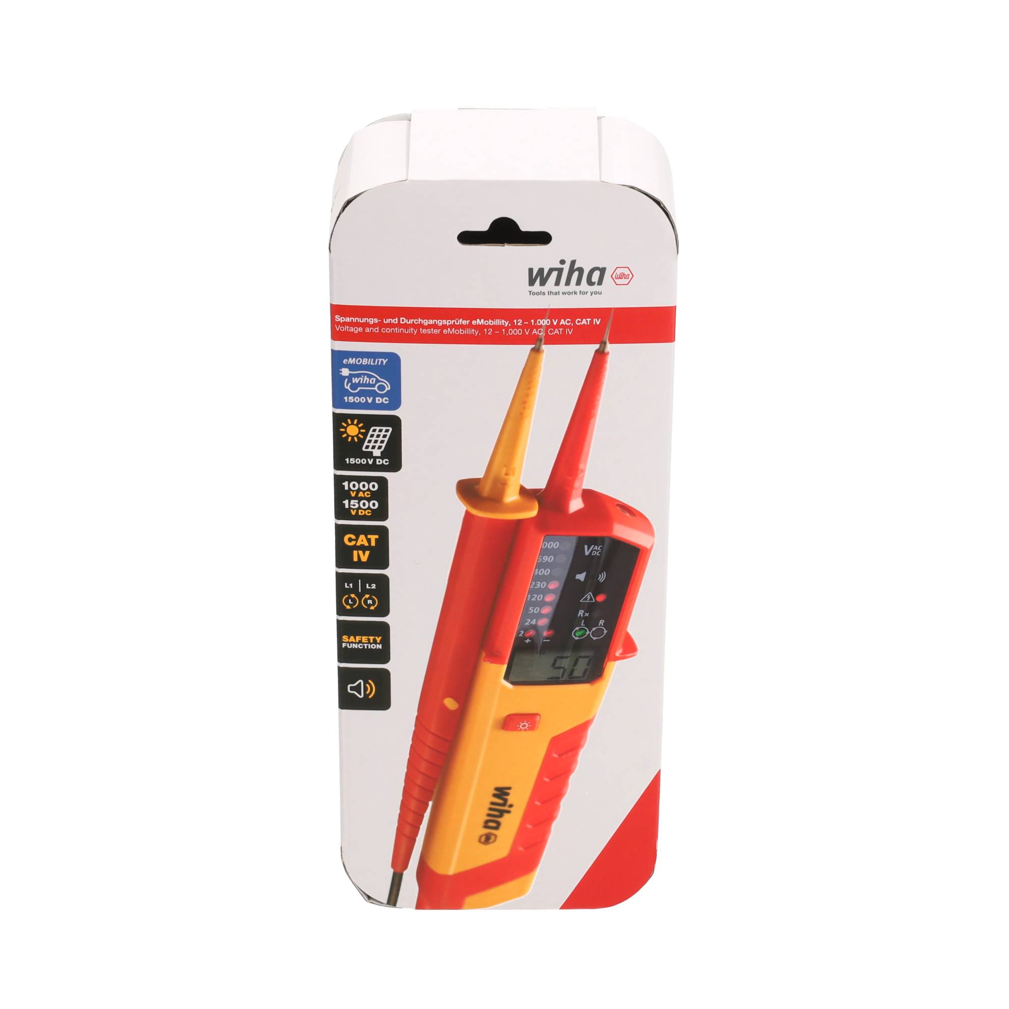 De Wiha Spannings- en doorgangstester eMobility 12 – 1.000 V AC CAT IV is dé tweepolige spanningszoeker voor moderne elektrotechnische toepassingen, waaronder onderhoud aan elektrische voertuigen, hybride systemen, e-scooters en zonnepaneelinstallaties. Met een breed meetbereik van 12 tot 1.000 V AC en tot 1.500 V DC, voldoet deze tester aan de hoogste veiligheidseisen in meetcategorie CAT IV.