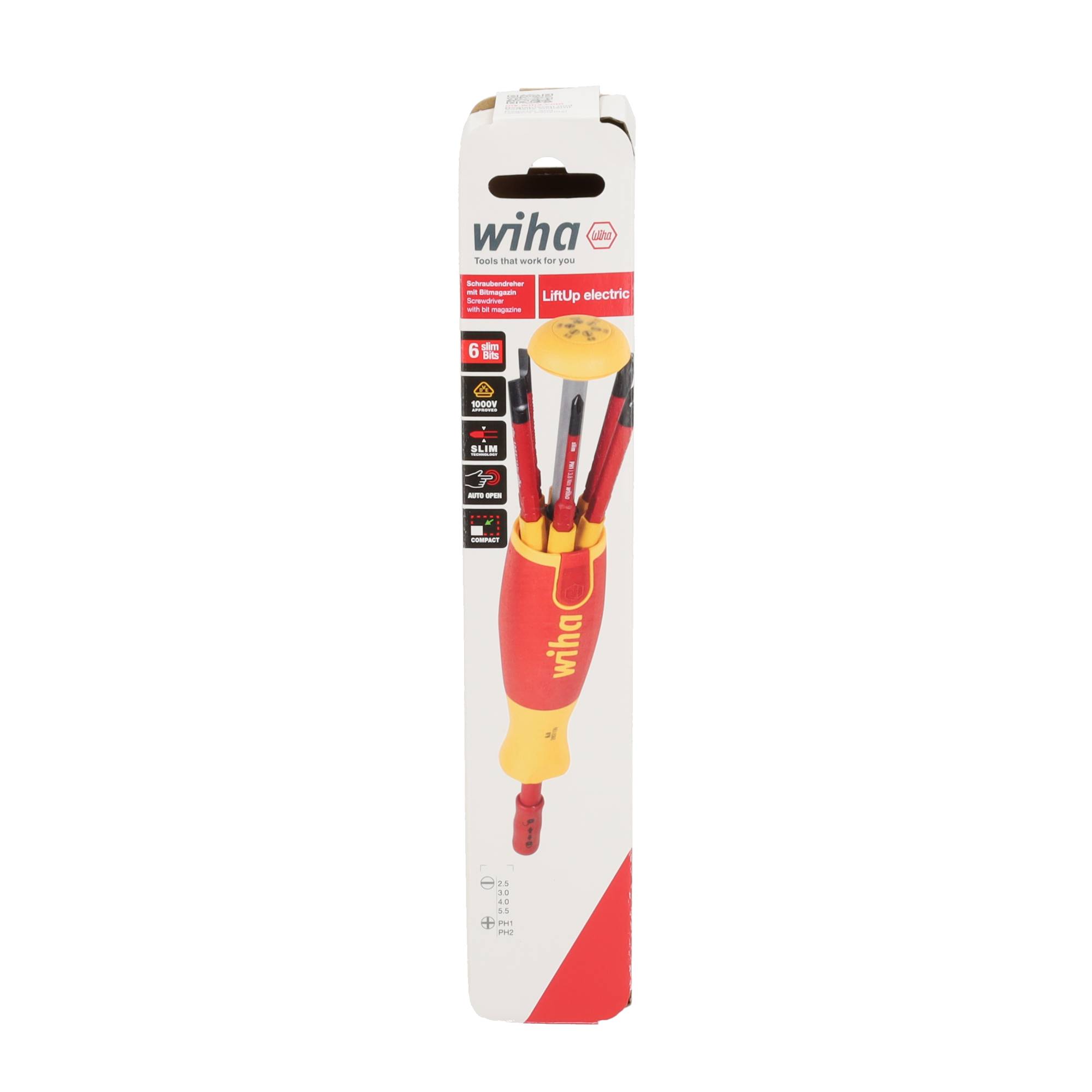 De Wiha VDE LiftUp electric Sleufkop/Phillips is de perfecte oplossing voor monteurs en installateurs die efficiënt, veilig en compact willen werken. Dankzij het geïntegreerde bitmagazijn, de gecertificeerde isolatie en het ergonomisch ontwerp is dit dé alles-in-één schroevendraaier voor werkzaamheden aan onder spanning staande installaties.